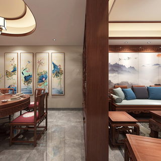中式客餐厅卧室全景