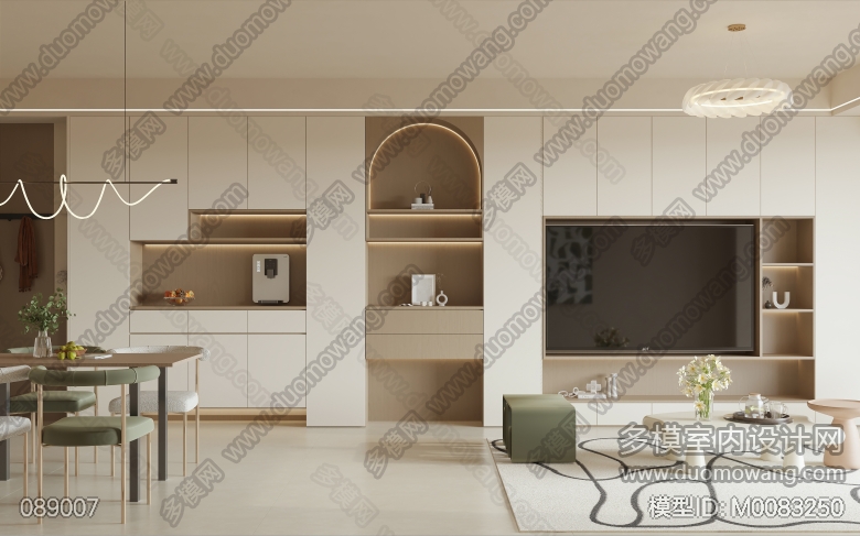 奶油风客餐厅全景一个 送2张单张 ID:M0083250