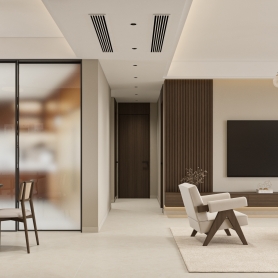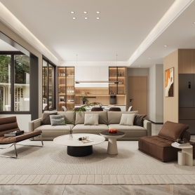 极简中古风格客餐厅1个全景