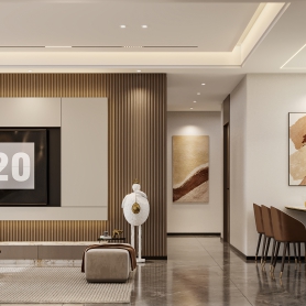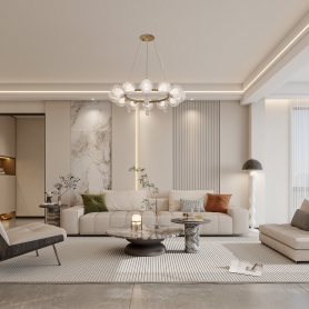 现代简约客餐厅全景+沙发墙静态+电视墙静态