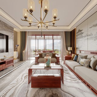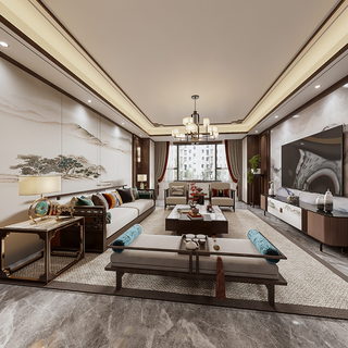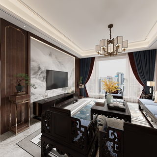 116㎡新中式风格样板间全景效果图赏析啦。