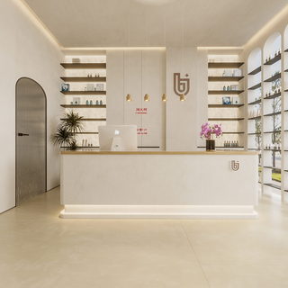 工装侘寂风美容院前台大厅效果图赏析啦。