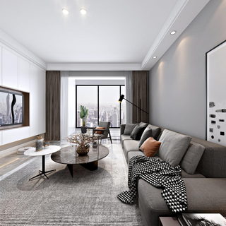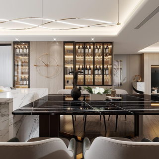 现代黑白餐厅全景