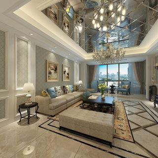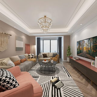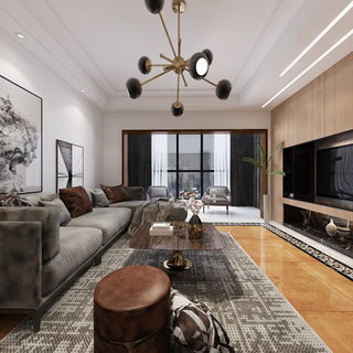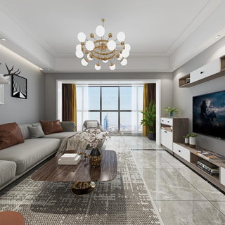 现代轻奢客厅全景