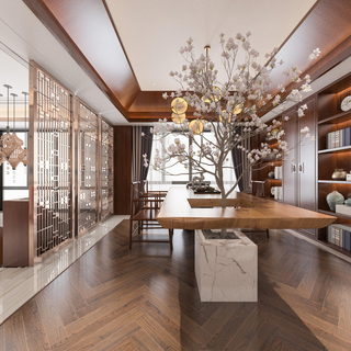 中式别墅书房全景