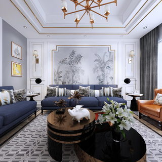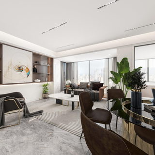 轻奢别墅客餐厅全景