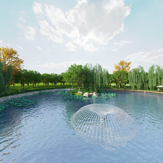 公园荷花池湖景