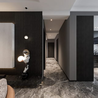 现代暗色客餐厅+楼梯间