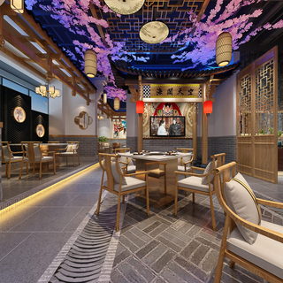 工装火锅店全景