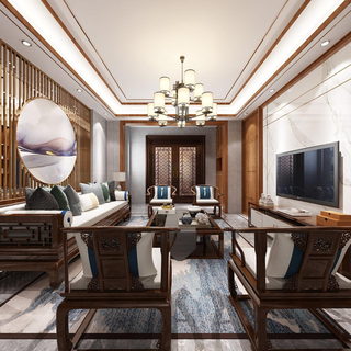 别墅新中式风格客厅餐厅