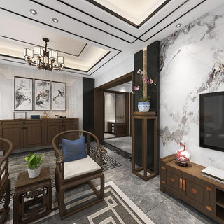别墅新中式客餐厅书房