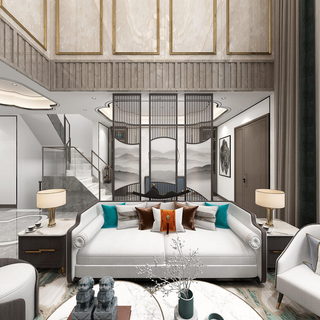 别墅新中式风格挑空案例