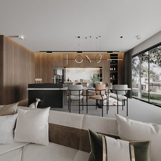现代极简无主灯客餐厅全景