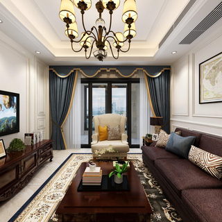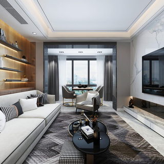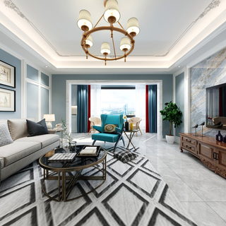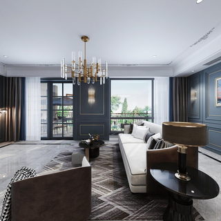 美式轻奢全景客餐厅卧室