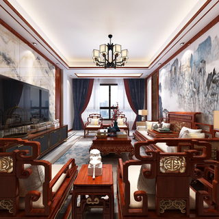 中式风格客餐厅全景