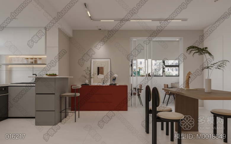 现代极简客餐厅+卧室 ID:M0018649
