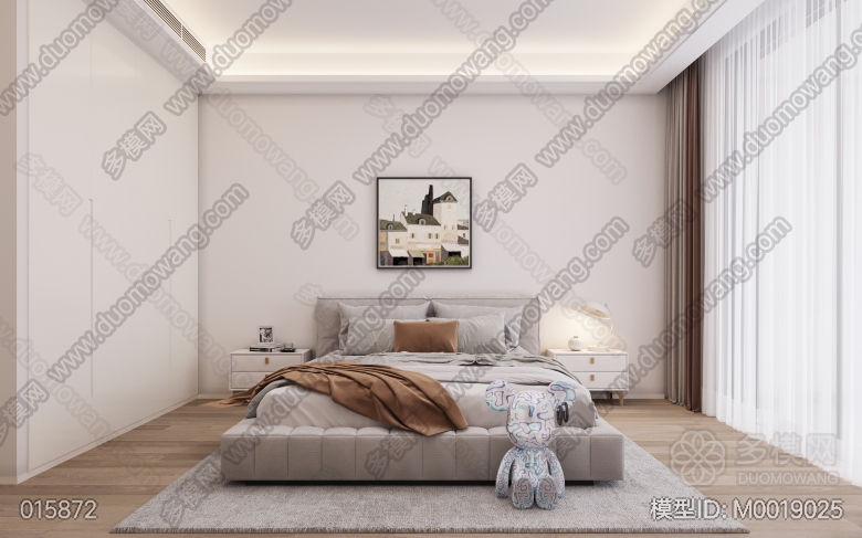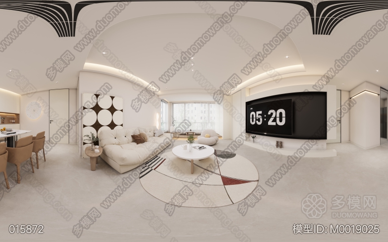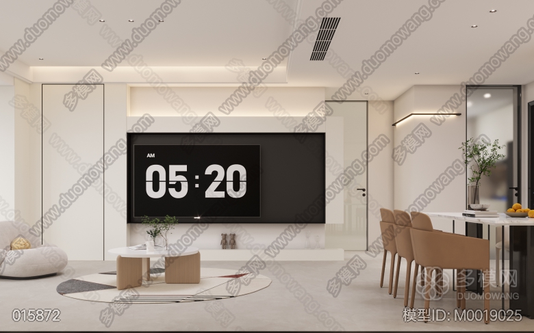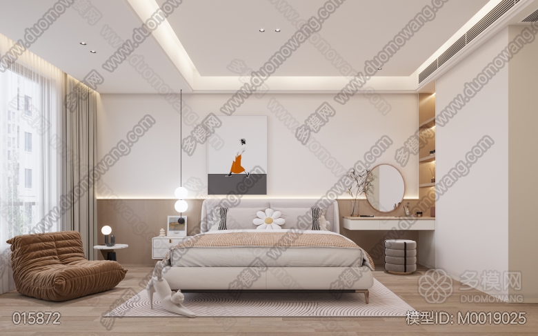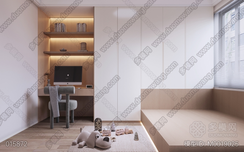 现代客餐厅+主卧+次卧+书房+儿童房+客卫+主卫+厨房 ID:M0019025
