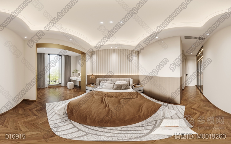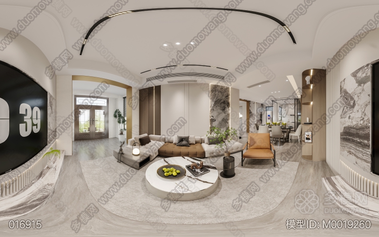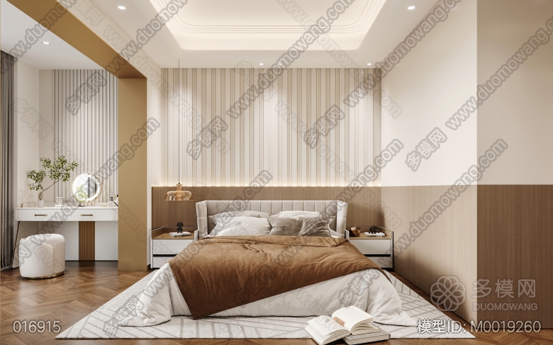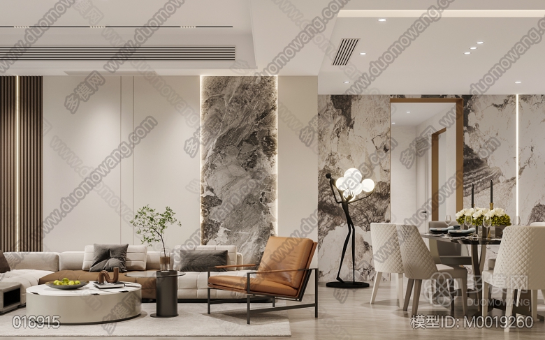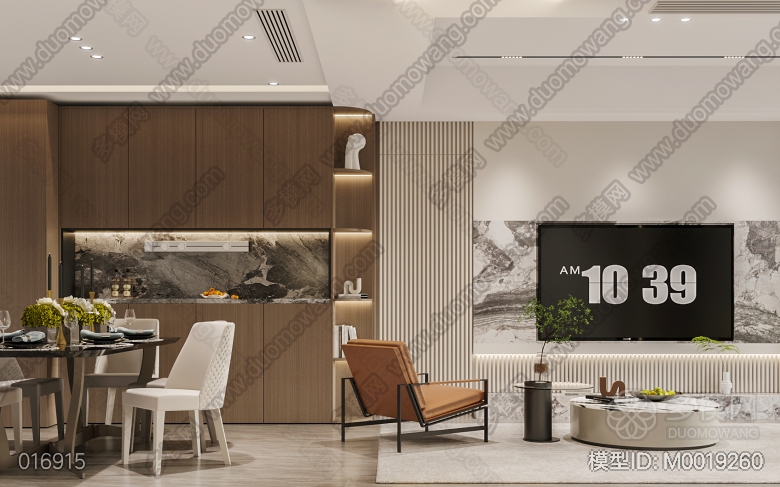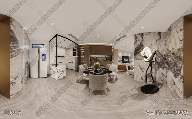 现代轻奢客餐厅开放厨房+主卧 ID:M0019260