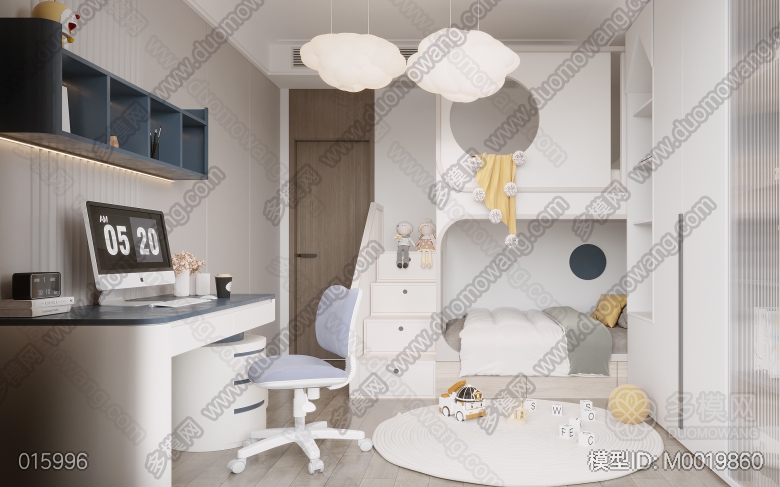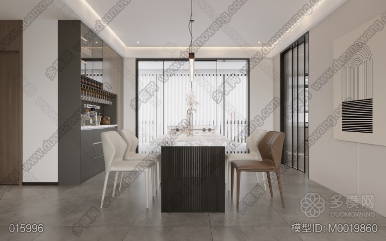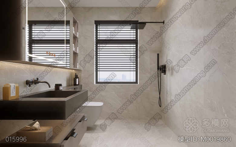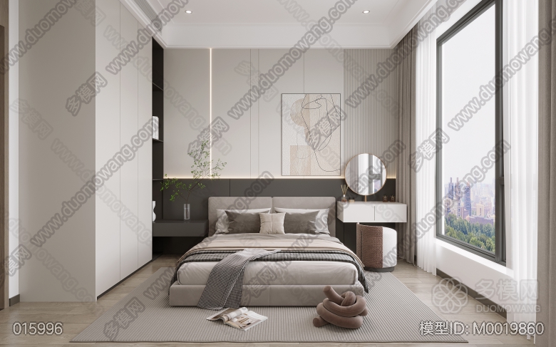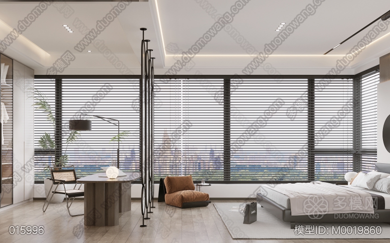 现代客餐厅+卧室+卫生间 ID:M0019860