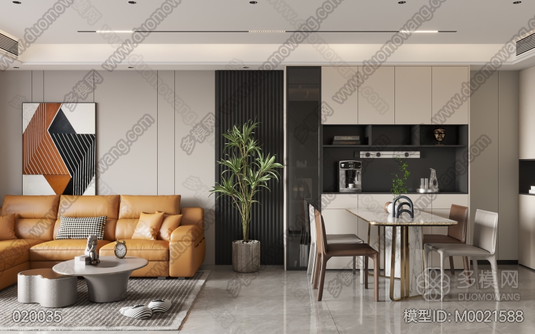 现代客餐厅+主卧+南次卧+书房 ID:M0021588