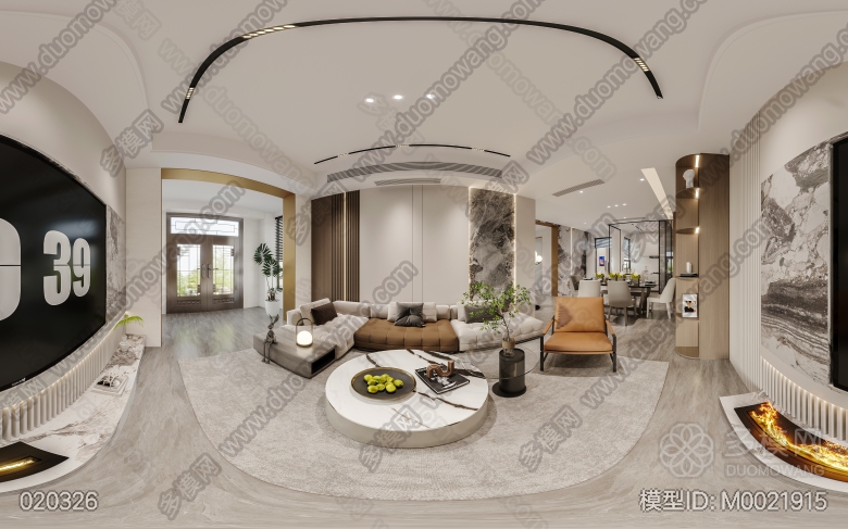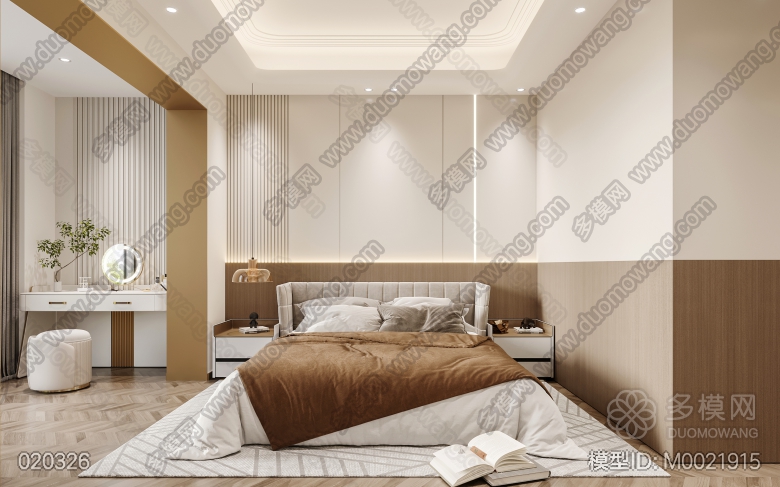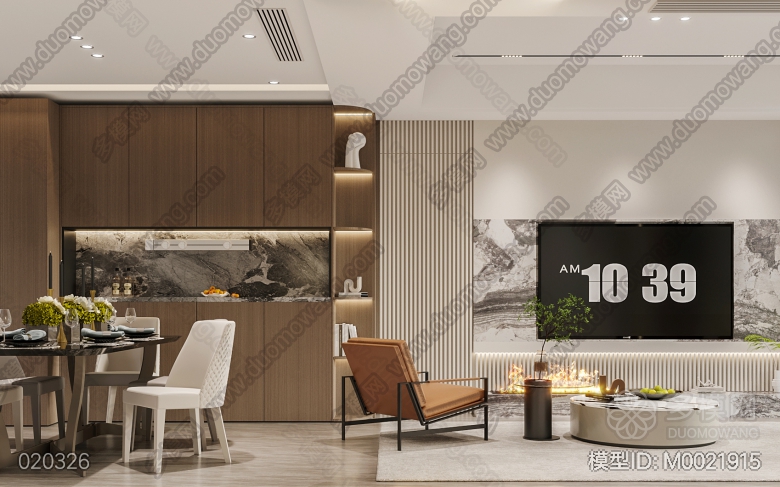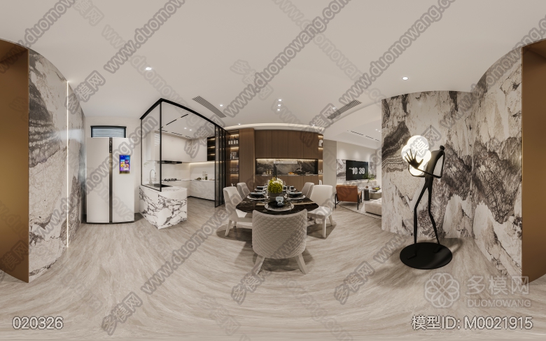 现代轻奢客餐厅开放厨房+主卧 ID:M0021915