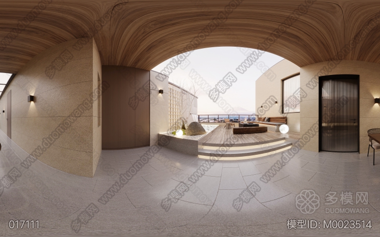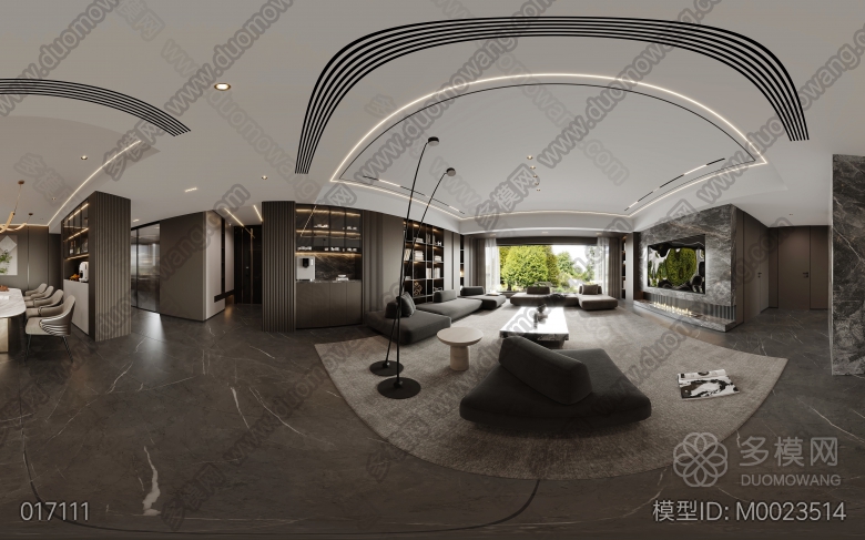 现代客餐厅-厨房-卧室-庭院 ID:M0023514