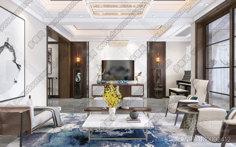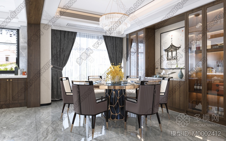 新中式客厅餐厅vr模型 ID:M0002412