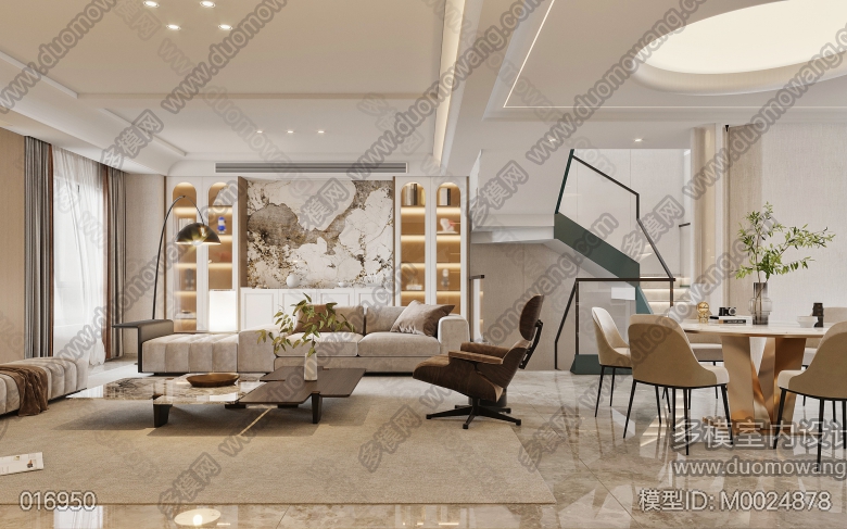 现代别墅客餐厅厨房卧室书房地下室 ID:M0024878