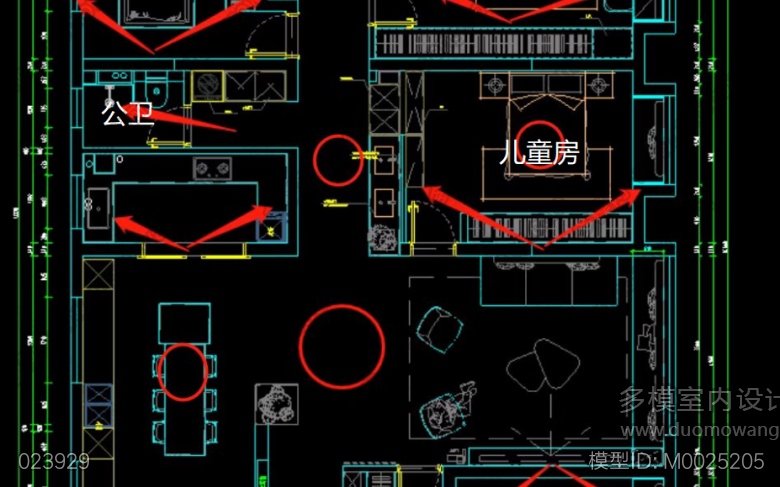 现代客餐厅+走廊+餐厅+主卧+儿童房+老人房 ID:M0025205