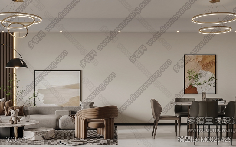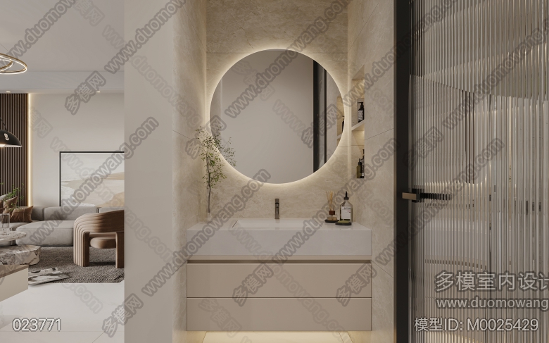 现代客餐厅+卧室+卫生间 ID:M0025429