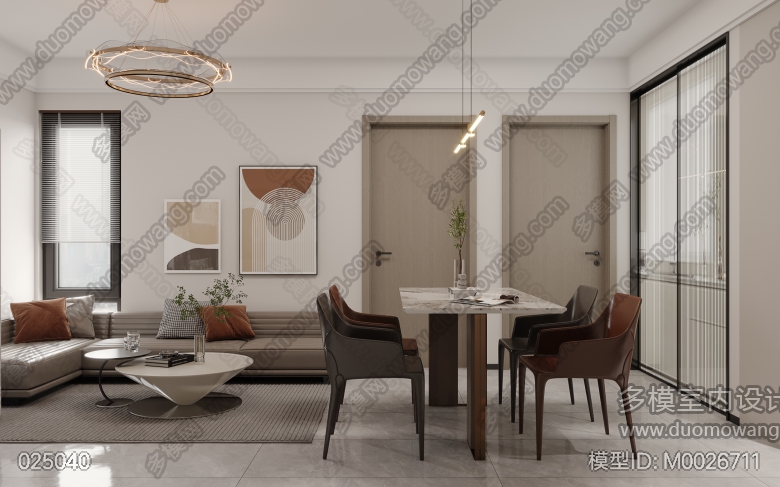现代客餐厅+主卧+次卧改图 ID:M0026711