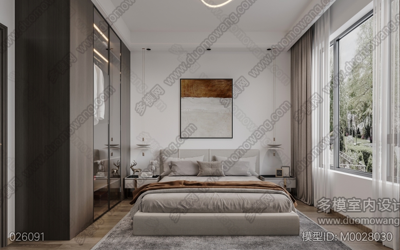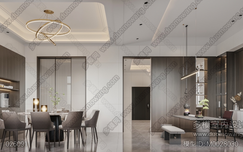 现代客餐厅+卧室+玄关+衣帽间 ID:M0028030
