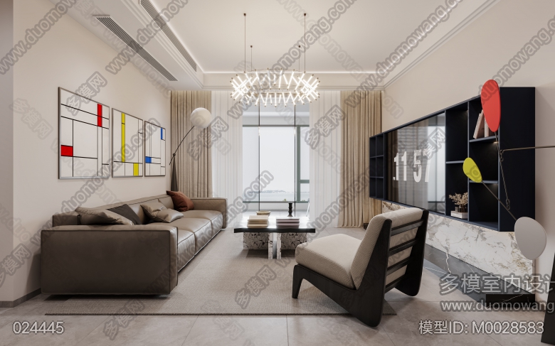 现代客餐厅+卧室+卫生间+书房+衣帽间 ID:M0028583