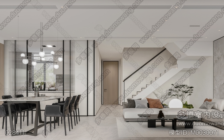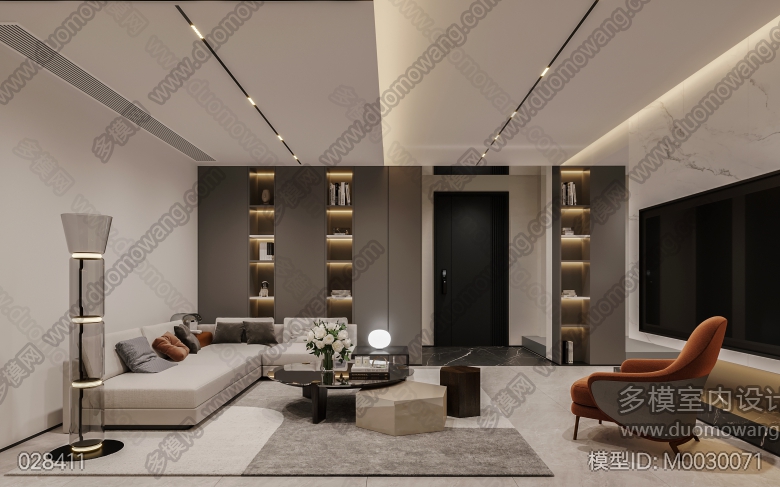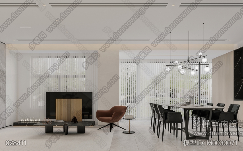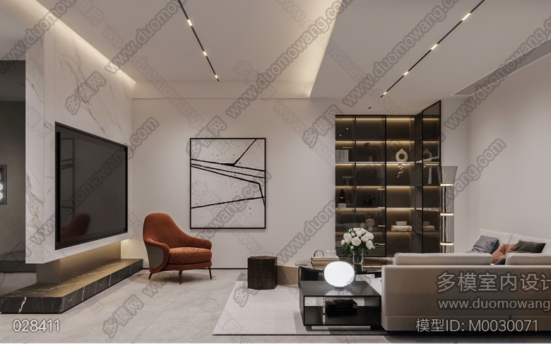 现代客餐厅+卧室+茶室 ID:M0030071