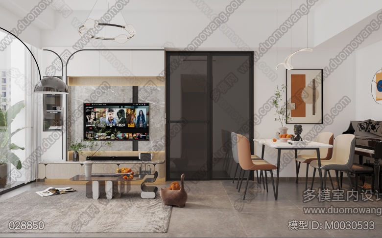 现代客餐厅+主卧+次卧1+次卧2 ID:M0030533