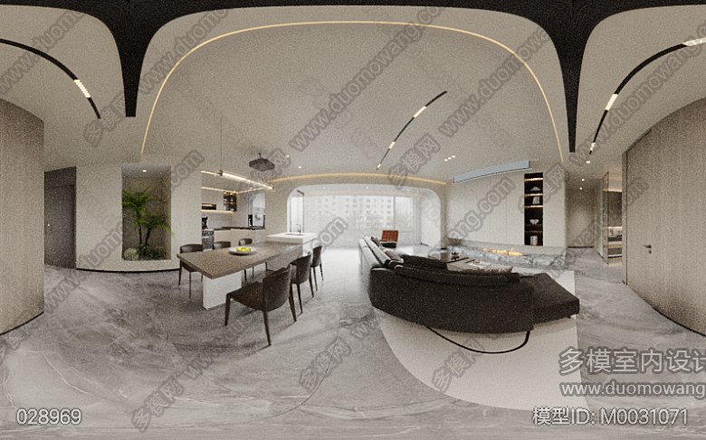 现代客餐厅+卧室+卫生间+厨房 ID:M0031071