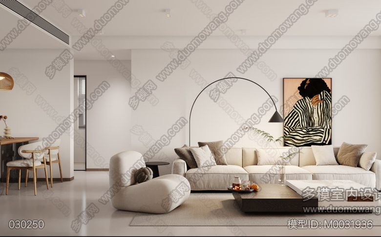 现代客餐厅+主卧+次卧+主卫+次卫+厨房 ID:M0031936