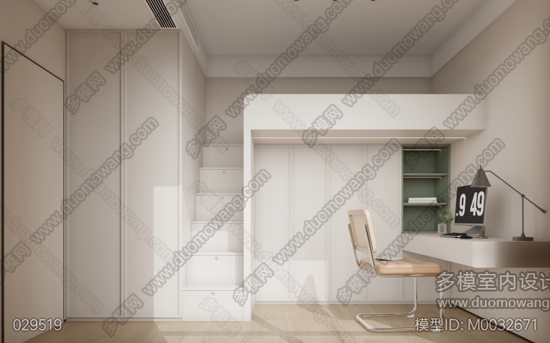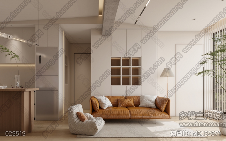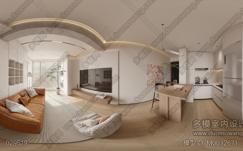 现代原木风客餐厅全景1张赠送静态2张+卧室静态1张 ID:M0032671