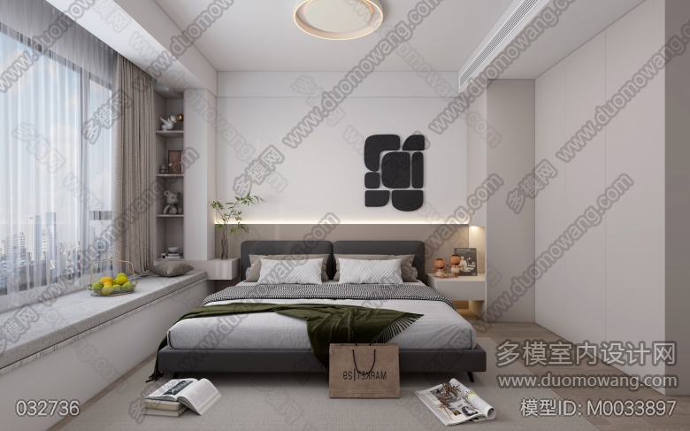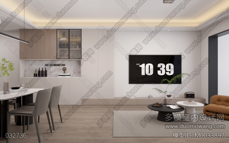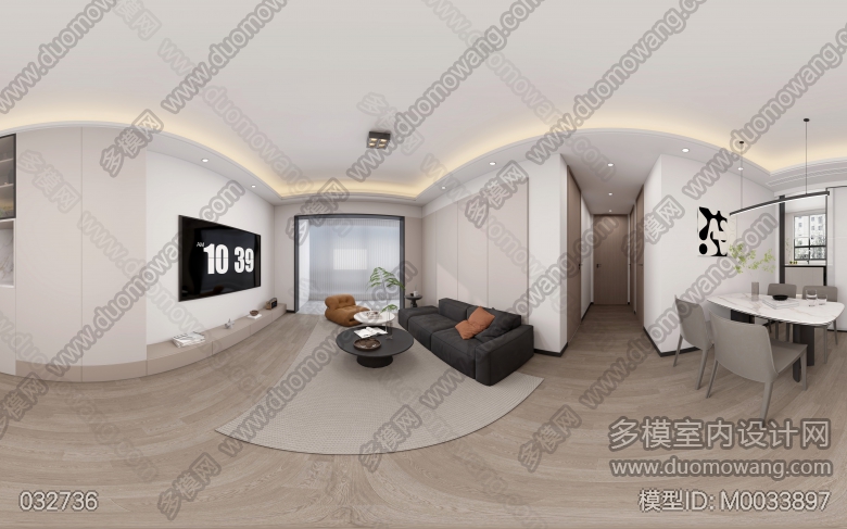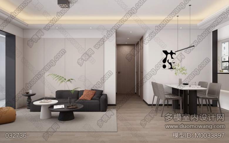 美的上城壹号106室现代客餐厅卧室1个全景2个单张 ID:M0033897