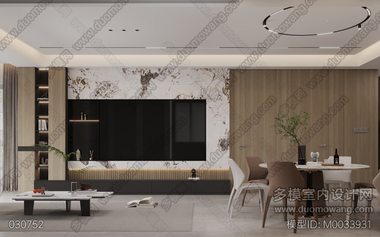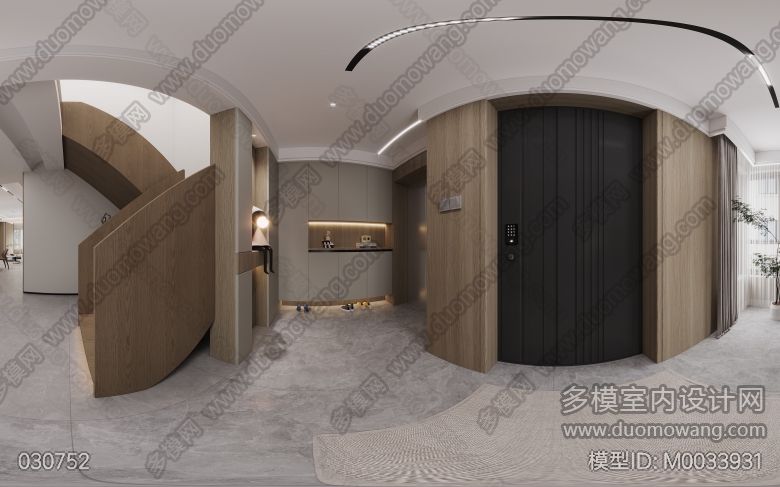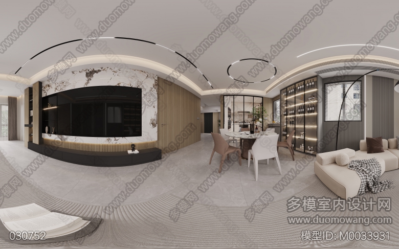 现代风一个客餐厅+一个卧室+一个入户玄关=三张全景 ID:M0033931