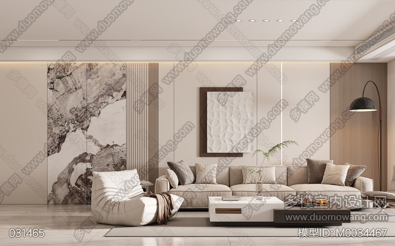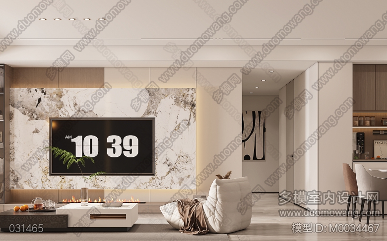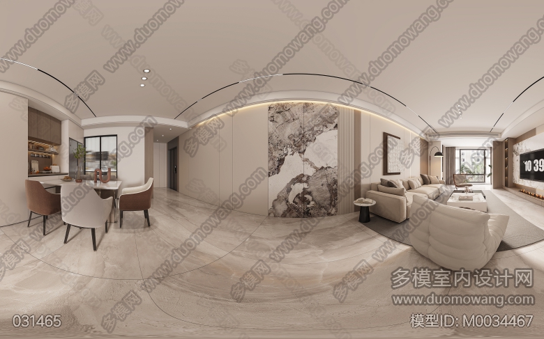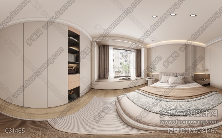 现代奶油客餐厅主卧两个全景送三张静态 ID:M0034467