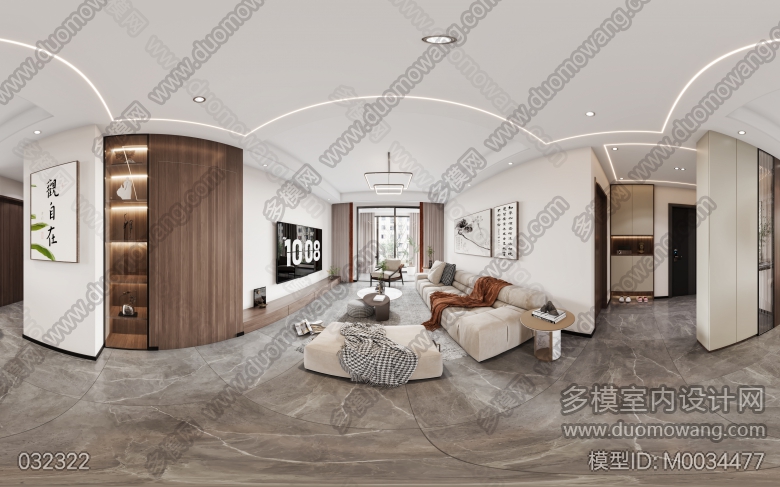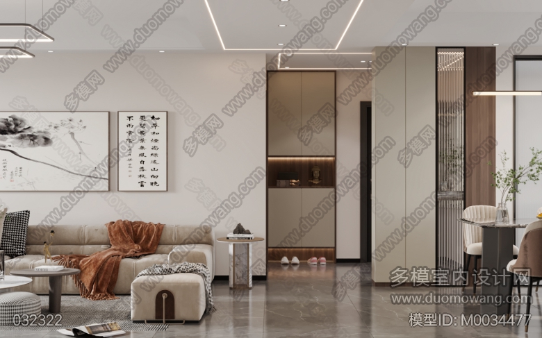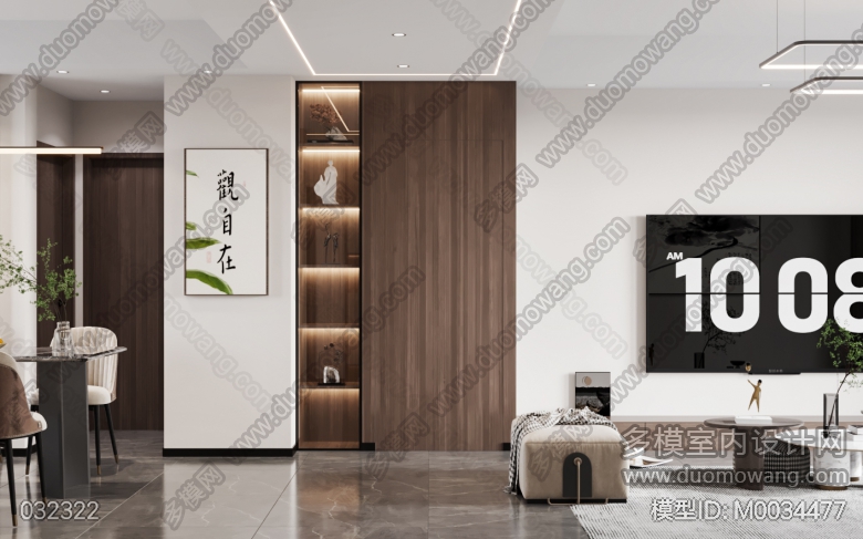现代中式客餐厅+卧室 ID:M0034477