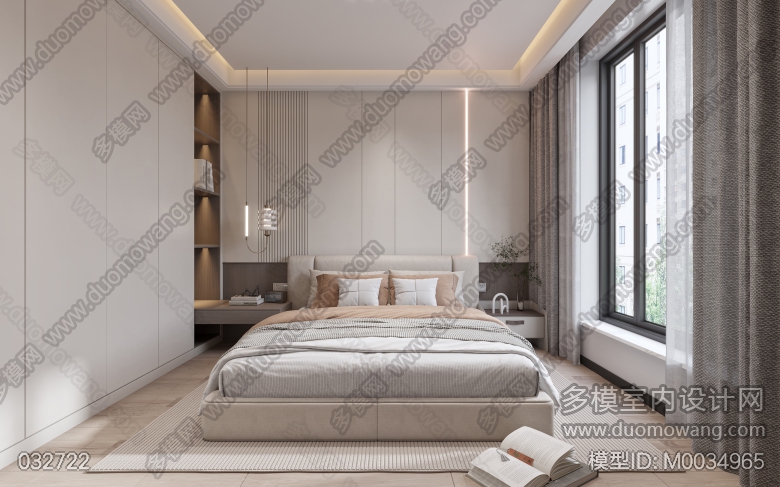 现代风格客餐厅全景+2特写+主卧单张 ID:M0034965