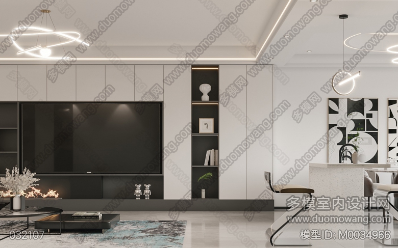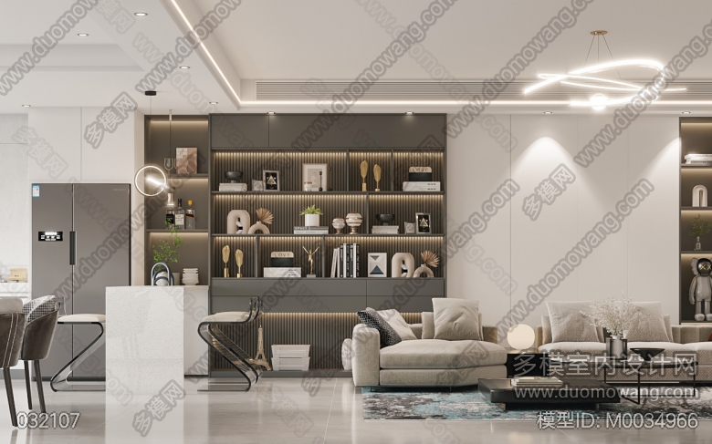现代客厅+厨房+餐厅+二胎房+主卧+小姑子房+小客厅 ID:M0034966