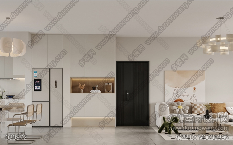 现代奶油客餐厅全景一个送两张静态 ID:M0035395