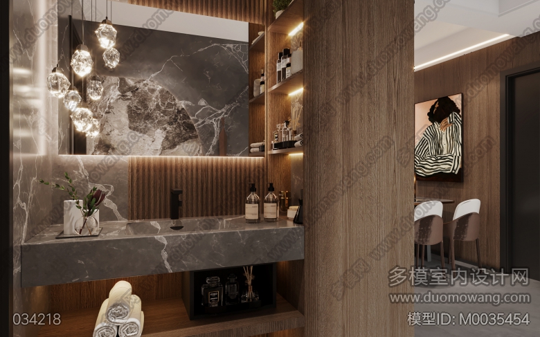 现代客餐厅+干区洗手池+主卧+衣帽间 ID:M0035454