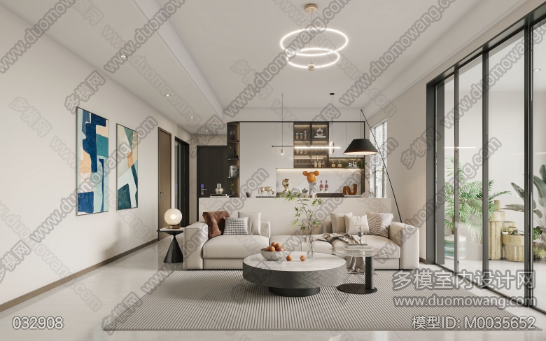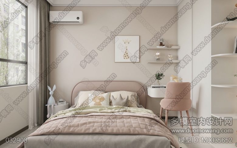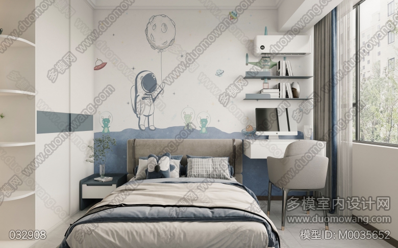 现代厨房+次卧+公卫+客餐厅+男孩房+女孩房+阳台+主卫+主卧 ID:M0035652