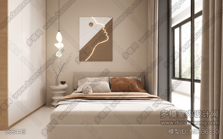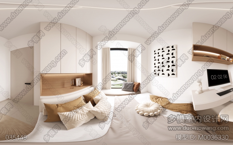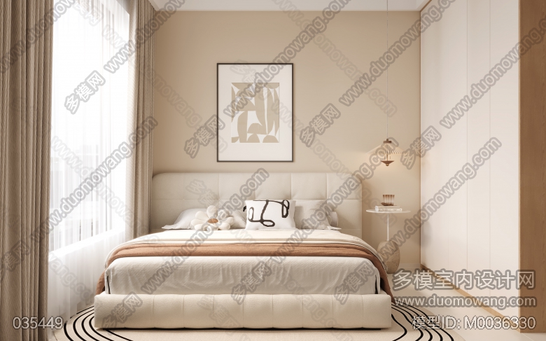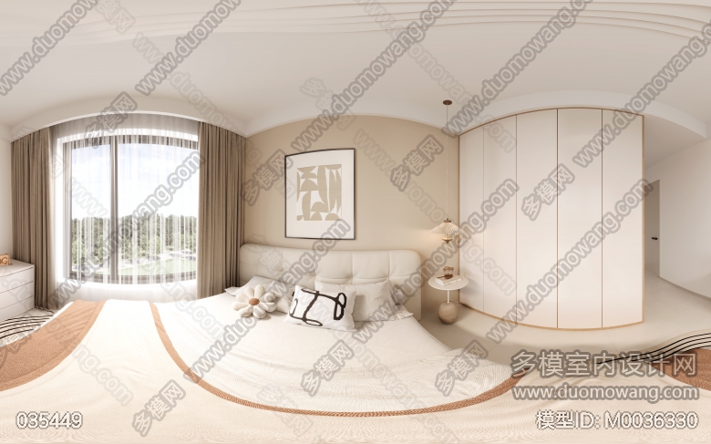 奶油风三个卧室全景+三个赠送的单张 ID:M0036330
