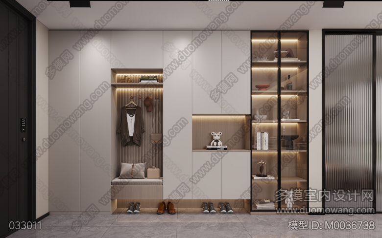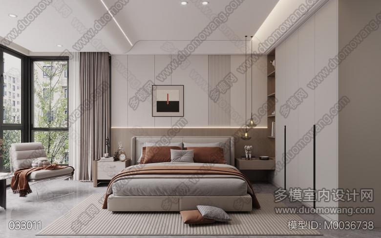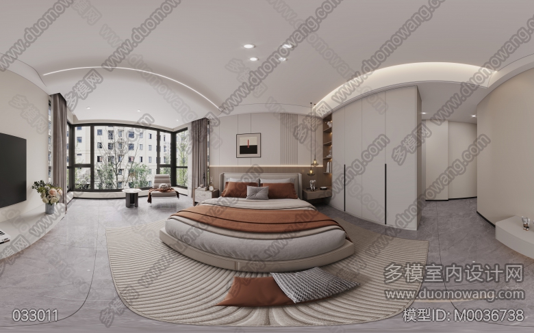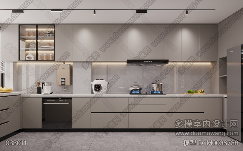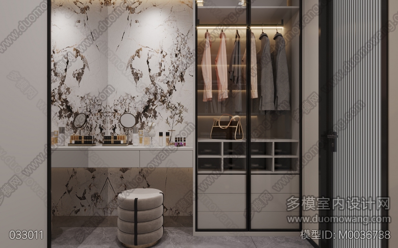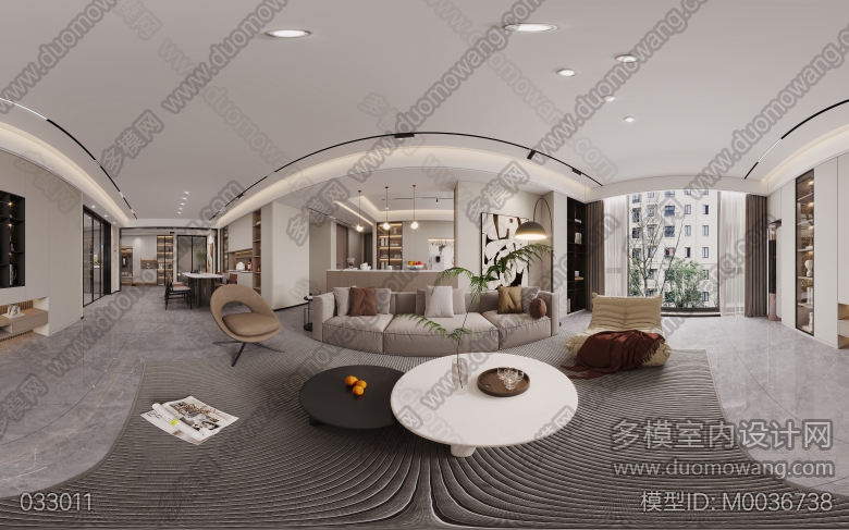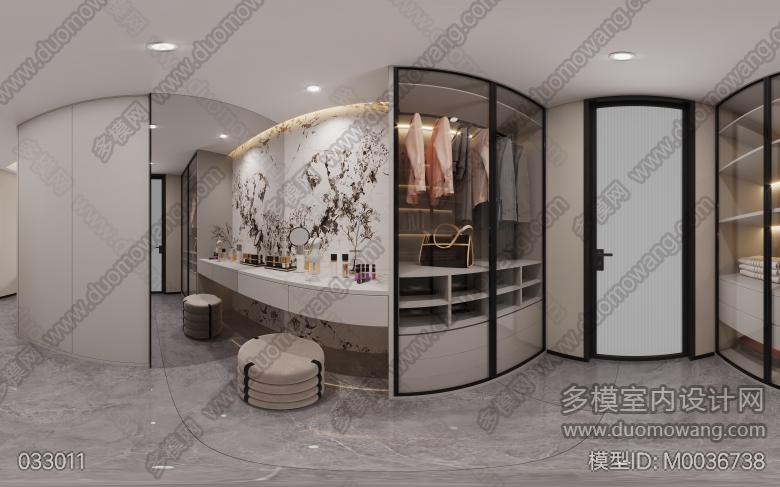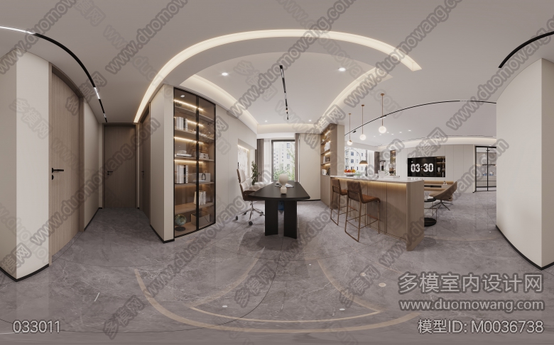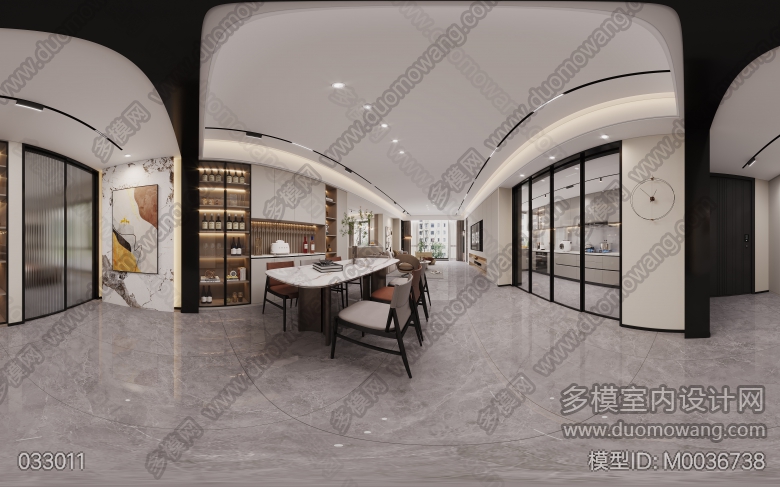 现代风格客餐厅两个全景+主卧全景+书房全景+衣帽间全景+厨房单张 ID:M0036738