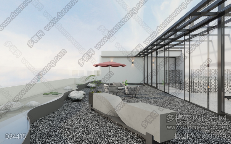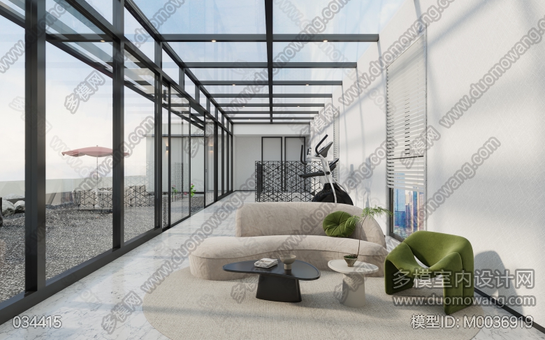 现代餐厅+茶室+厨房+现代次卧+阳光房+庭院 ID:M0036919